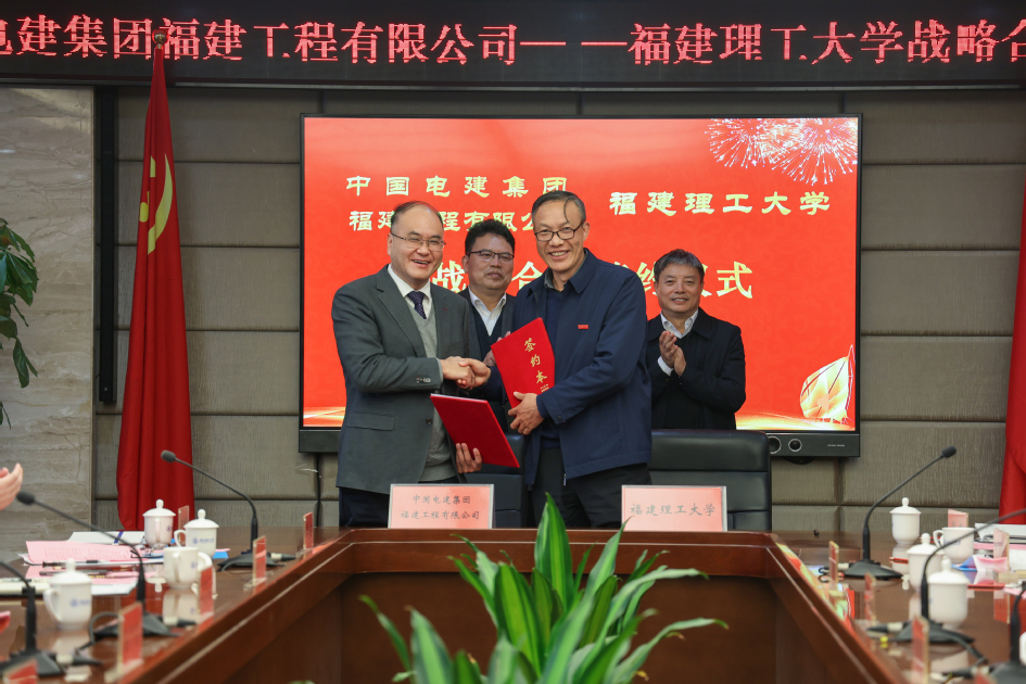 1月8日下午,学校与中国电建集团福建工程有限公司签署战略合作协议。校长童昕、董事长林炳润出席仪式并见证签约,副校长刘国买、总经理陈开荣代表双方签署协议。随后,双方就合作内容进行了深入交流。