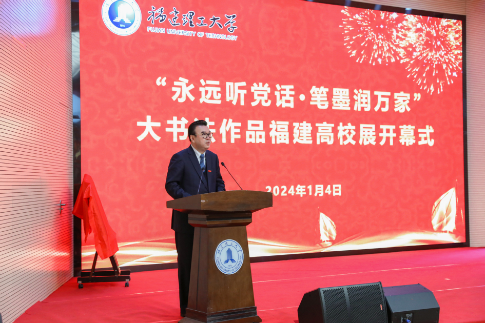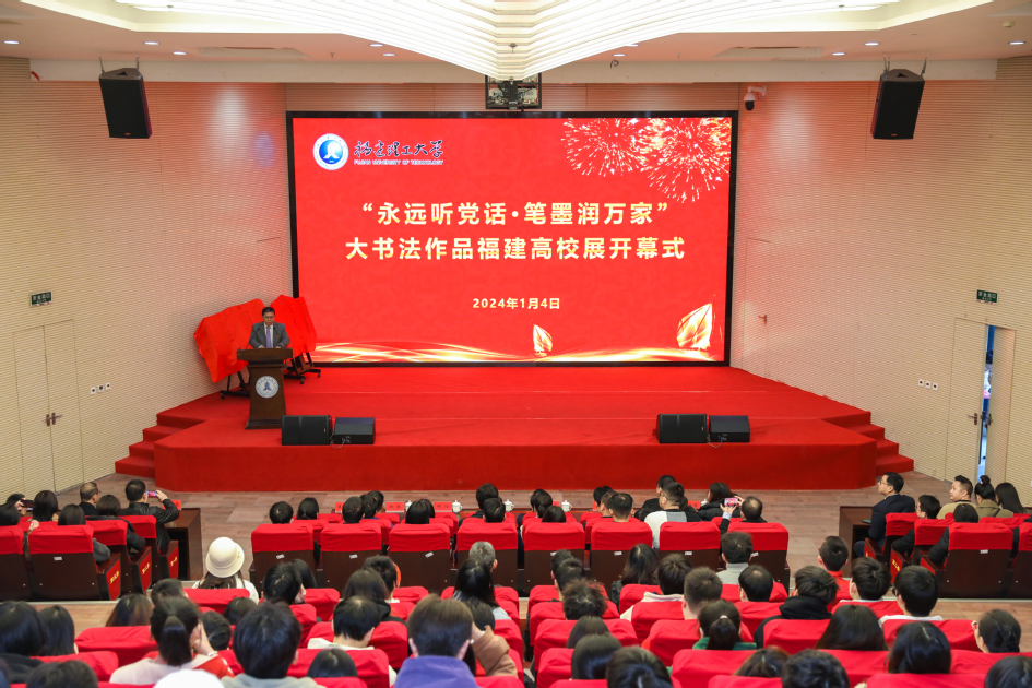1月4日上午,“永远听党话·笔墨润万家”大书法作品福建高校展开幕式在我校举行。校长童昕、副校长何仕,中国硬笔书法协会主席张华庆、中国硬笔书法协会常务副主席兼秘书长李冰、福州大学附属实验学校副校长陈光登,以及硬笔书法协会代表、学校师生代表参加开幕式。