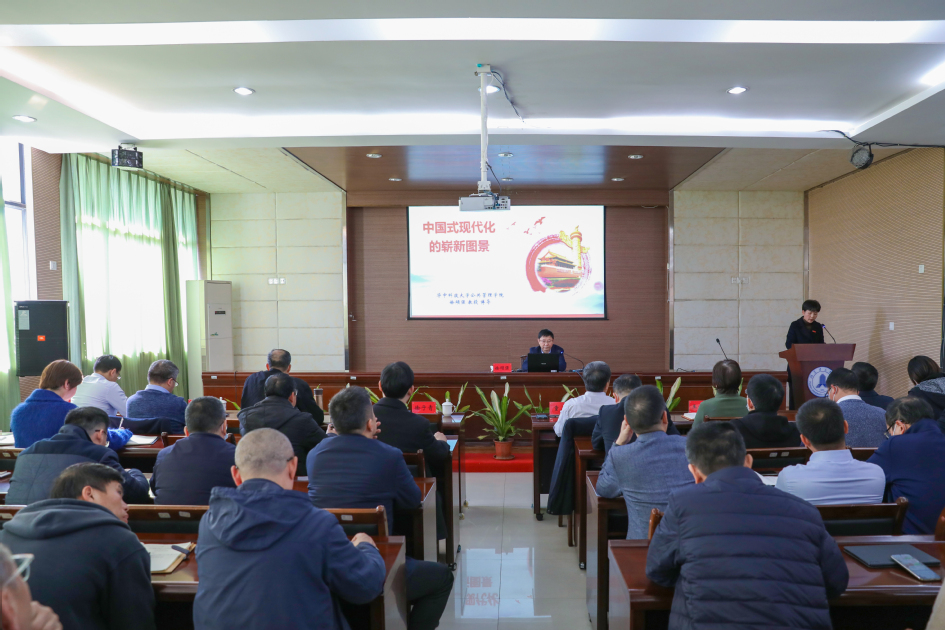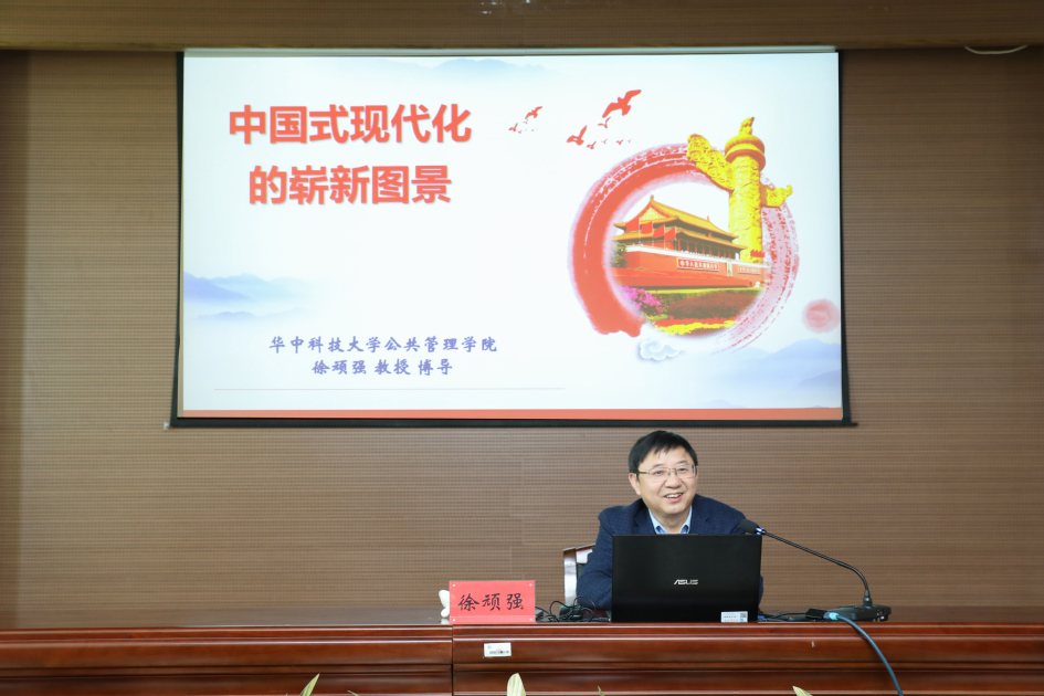 1月10日下午,校党委理论学习中心组召开学习(扩大)会议,华中科技大学徐顽强教授应邀到会,作题为“中国式现代化的崭新图景”的专题辅导报告。校领导、校两委委员、各二级单位党委委员、机关部处及直属单位负责人参加会议,校党委副书记徐子青主持会议。