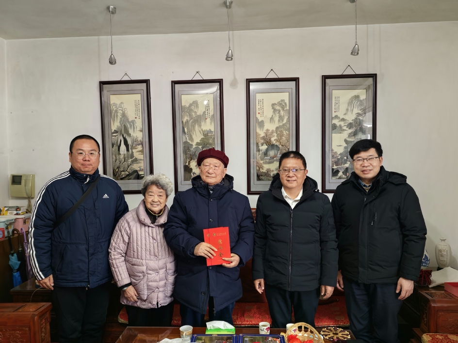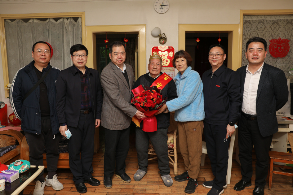 吴仁华来到百岁寿星、离休干部、高级讲师施自祥家中走访慰问。为施老师披上“百岁寿星”绶带,送上鲜花,祝愿他健康长寿。与施老师及家人促膝谈心,详细询问他身体状况及日常起居,看到他耳聪目明,精神矍铄,面色红润,身体健康,吴仁华非常高兴。向施老师介绍了近年来学校事业发展情况,特别是学校更名大学、博士授予单位建设以及开启建设高水平创新的理工类大学新征程情况。