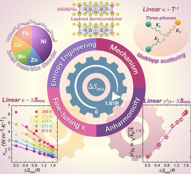 图1 论文图形摘要:层状半导体中通过熵工程实现对晶格热导率及非间谐效应的精细调控