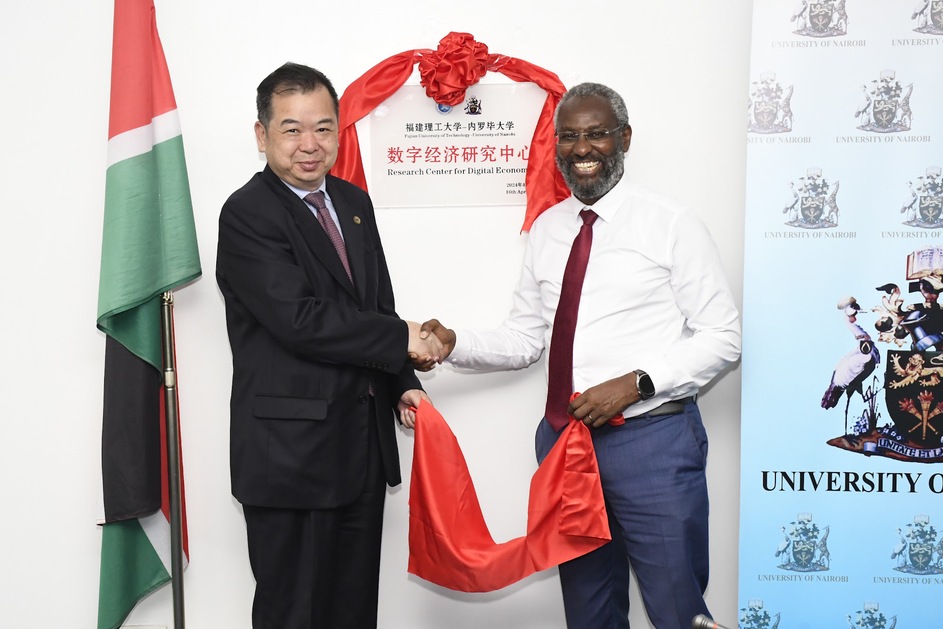 代表团在肯尼亚内罗毕大学交流访问,并为两校共建的数字经济研究中心揭牌
