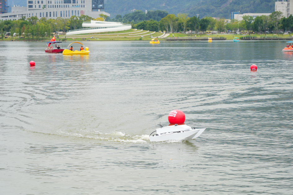 在企业表演赛上,上海华测导航技术有限公司、广州中海达测绘科技有限公司福建分公司、深圳飞马机器人股份有限公司、深圳朝闻道科技有限公司、深之蓝海洋科技股份有限公司、阿尔法测绘科技(广州)有限公司等企业在旗山湖水面现场实操演示了各自的先进产品和新型装备。中国移动通信集团福建有限公司福州分公司、威海方得海洋科技有限公司、福建申昊科技有限责任公司、福建中海丰智能科技有限公司、广州南方测绘科技股份有限公司等企业作了产品静态展示。