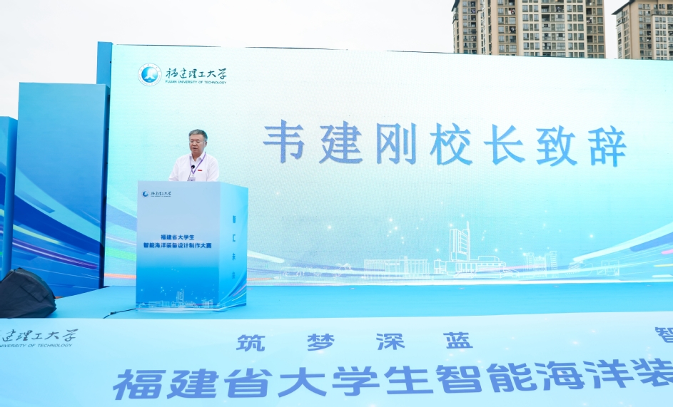 韦建刚在开幕致辞中代表组委会向与会嘉宾、参赛队伍及参展参演企业表示热烈欢迎,强调了新时期加快推动海洋强国、海洋强省建设的重大意义,介绍了福建理工大学在“大海工”领域的创新实践与探索,并预祝参赛队伍取得好成绩。