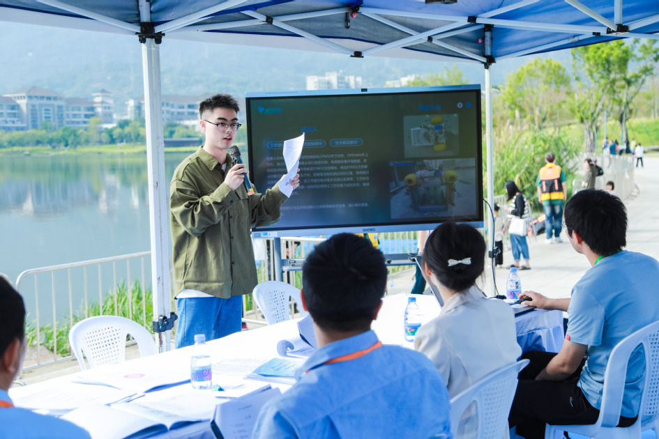 11月9日下午至10日举行了激烈的高校角逐赛,各高校参赛团队按顺序依次对参赛作品进行展示,从作品设计理念入手,对作品的结构、功能、应用场景、未来前景等方面进行了详细介绍,并在比赛水池和旗山湖水面上进行演示,充分展示参赛学生扎实的专业知识基础与创新设计能力,展现所在高校在海洋装备设计、制作以及海洋技术研究等领域的综合实力。大赛评委从项目的可行性、创新性、实践性等方面对参赛团队进行提问,并结合作品演示情况综合打分并提出改进提升建议。