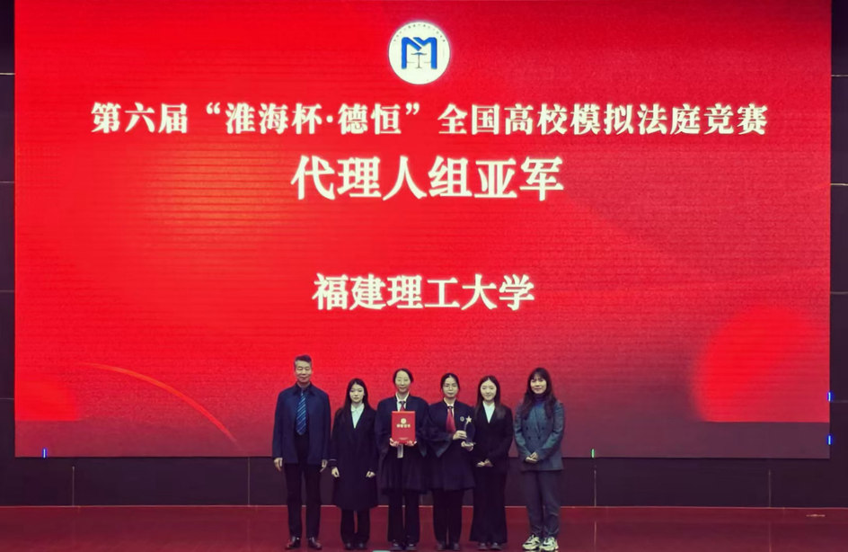 11月24日,第六届“淮海杯·德恒”全国高校模拟法庭竞赛在山东师范大学落下帷幕。经过激烈比拼,由我校法学院·知识产权学院苏媛、陈丽娟、金叶玲、张名希4位同学组成的模拟法庭代表队,在梁开斌、翁梦佳、董思远、胡聪沛等4位老师以及福建元一律师事务所律师林辉星组成的教练组的指导下荣获代理人组亚军,取得了近年来参加全国模拟法庭竞赛的最好成绩。