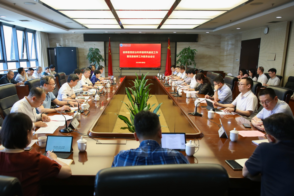 5月8日下午,学校在行政楼第一会议室召开教师思想政治和师德师风建设工作暨党委教师工作委员会会议,传达学习上级有关工作精神,部署学校2025年教师思想政治和师德师风建设工作。校领导李绚、韦建刚、詹松青、徐子青、刘国买,校党委教师工作委员会成员单位负责人、校师德建设领导小组成员单位负责人以及各二级单位党委书记参加会议。会议由副校长刘国买主持。