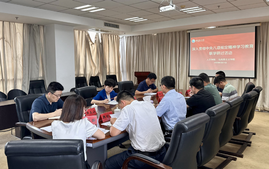 5月21日上午,校党委副书记徐子青深入所联系学院,参加深入贯彻中央八项规定精神学习教育联学研讨活动。学工部负责人,马克思主义学院、人文学院党政班子成员参加活动。