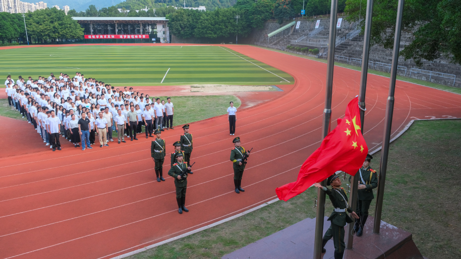 10月1日上午,学校在旗山校区和鼓山校区同步举行庆祝中华人民共和国成立76周年升国旗仪式。鲜艳的五星红旗伴随着雄浑嘹亮的国歌声冉冉升起。学生代表们深情朗诵《复兴路上的青春力量》、高唱《歌唱祖国》,抒发了新时代青年的爱国情感,展现福工学子矢志报国、挺膺担当的精神风貌。