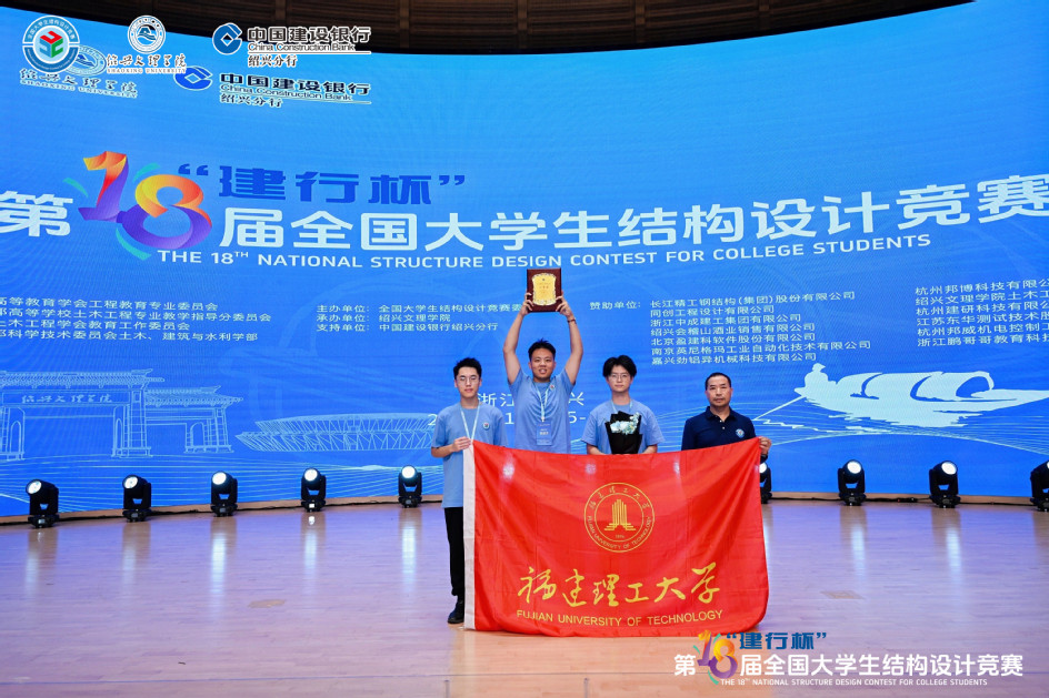 10月19日,第十八届全国大学生结构设计竞赛总决赛在绍兴文理学院落幕。由我校土木学院张凌峰、郑泓泽、倪远文三位同学组成的参赛团队荣获全国一等奖(带队老师:庄金平,指导老师:郑居焕、项洪、张瀚文),在全国排名中位列第11名,创下我校参加该项赛事以来的历史最好成绩。
