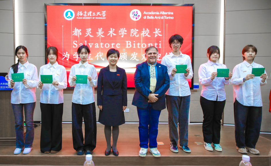 11月17日下午,福建理工大学与意大利都灵美术学院中外合作办学项目揭牌仪式在旗山校区南区举行。都灵美术学院校长Salvatore Bitonti,福建理工大学副校长吴琛出席仪式。学校机关部处、相关二级学院负责人及师生代表参加仪式。