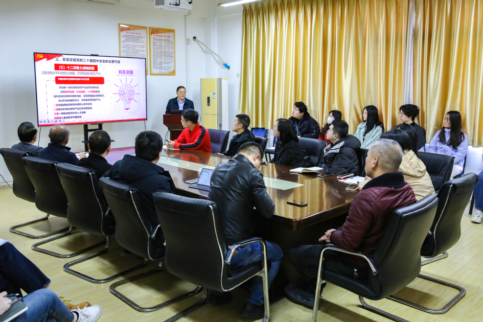 12月31日上午,副校长何仕为师生党员宣讲党的二十届四中全会精神。基建处党支部、城环学院给排水教研室党支部,以及设计学院党委班子成员、科级干部、党支部书记及学生党员代表参加会议。