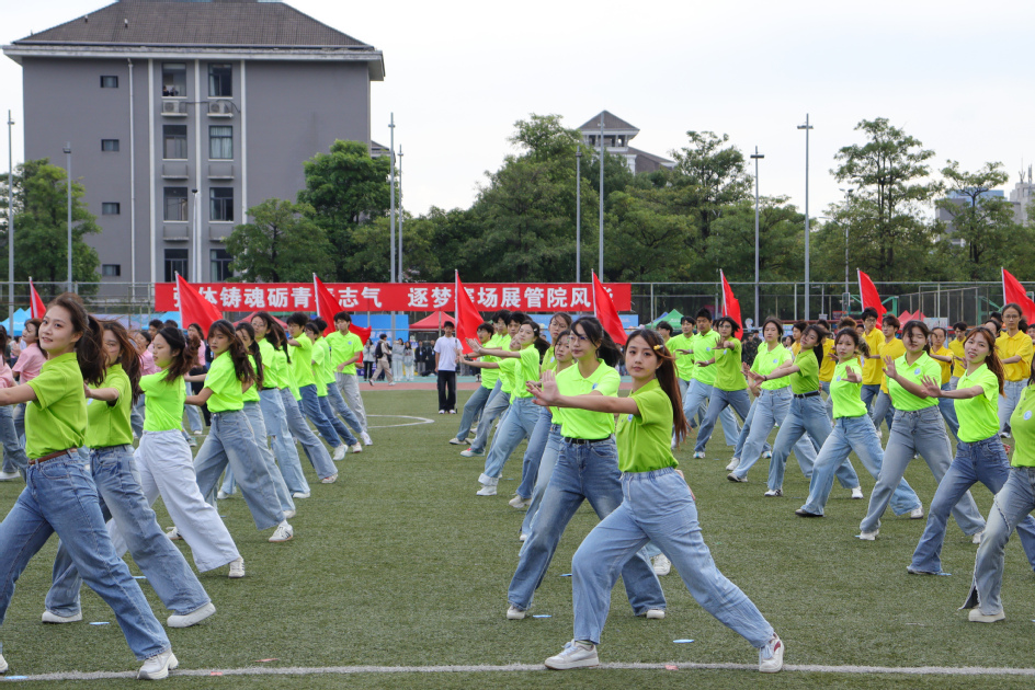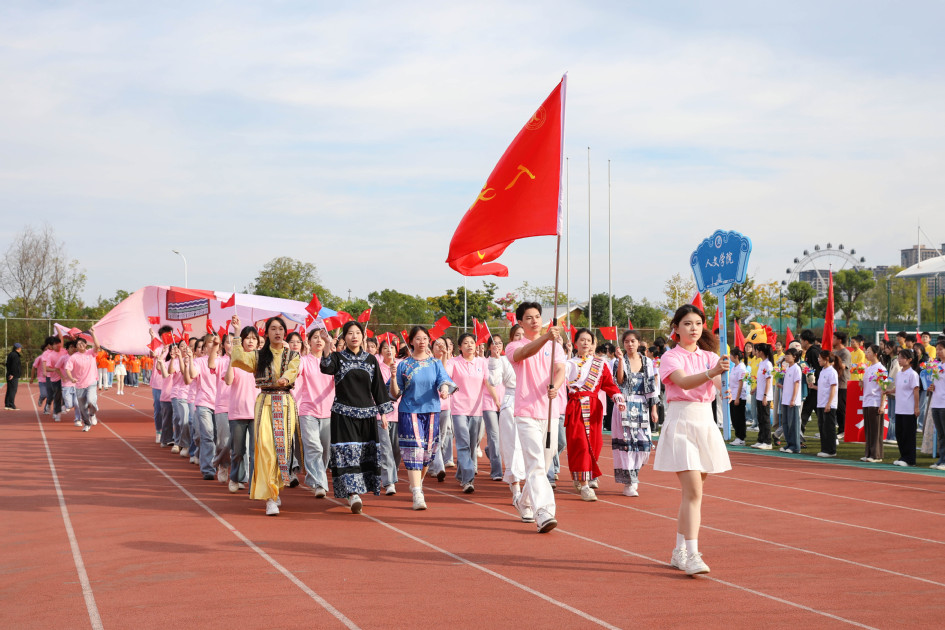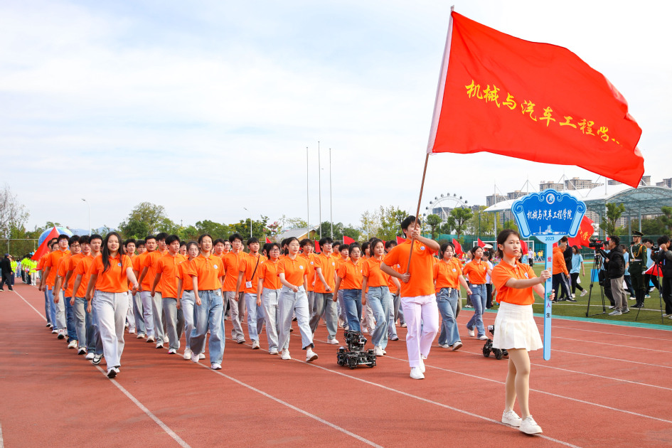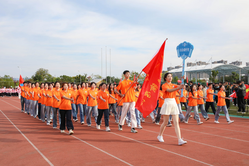 开幕式上,韦建刚宣布本届运动会开幕,吴琛致开幕辞。运动员代表、裁判员代表分别作了宣誓。各代表队方阵步伐坚定有力、口号整齐嘹亮,洋溢着青春与活力,散发着自信与阳光,展示了新时代青年奋勇拼搏、昂扬向上的青春风采。百人舞蹈《一起向未来》诠释了体育与艺术融合之美,彰显了“爱体育、智人生”的校园体育文化氛围。(体育部供稿)