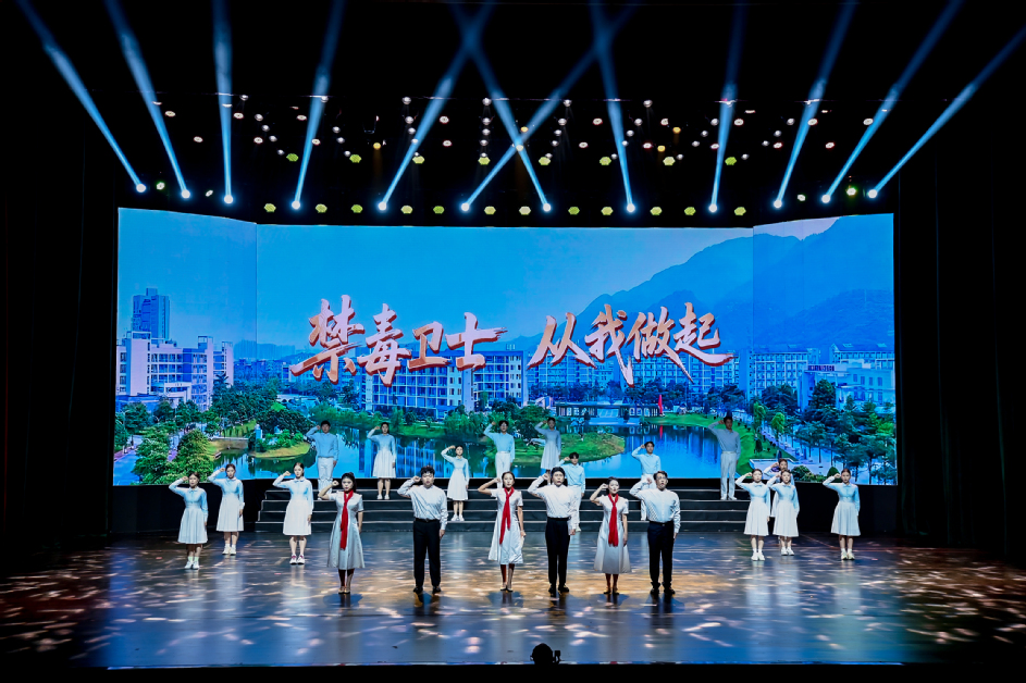 在文化艺术节的禁毒艺术成果展区内,440余件由高校学生创作的禁毒主题海报、视频、节目集中亮相;禁毒公益宣传集市通过展示毒品仿真模型,设置禁毒反诈知识问答、有奖竞猜等环节,现场科普防毒防骗知识。在艺术节展演现场,我校朗诵作品《薪火照山河:禁毒卫士,从我做起》以激昂的语调、饱满的情感展现了当代青年学子争做“禁毒宣传”志愿者的责任和担当。现场还举行了“禁毒反诈先锋”专项行动和全省首届大学生禁毒文化艺术节优秀作品颁奖仪式,我校多件作品受表彰,学校获评“优秀组织奖”。
