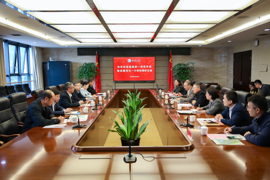 12月24日上午,湖南第一师范学院校长喻祖国一行来校交流。校长韦建刚热情接待了喻祖国一行,副校长刘国买,人事处、教务处、学科办、发规办、计数学院等相关单位负责人参加交流。