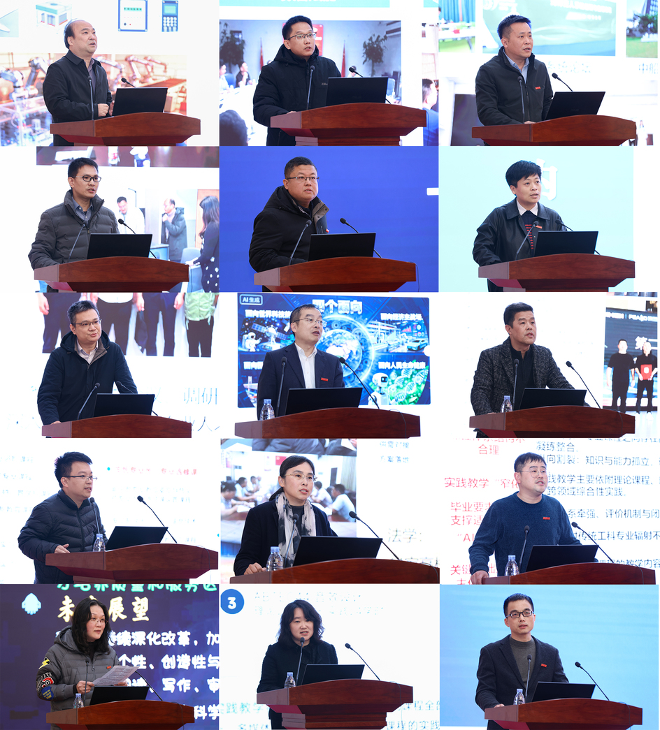 在交流汇报环节,电气学院、人文学院、计数学院教师代表围绕产教融合人才培养模式改革、公共课程改革、人工智能赋能专业课建设、实验教学改革等主题分别作了发言。来自15个学院的教师代表结合调研情况,汇报了2026版本科人才培养方案的修订思路。