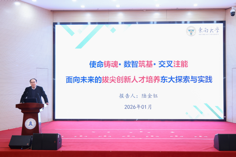 东南大学教务处处长陆金钰教授受邀作了题为《使命铸魂 数智筑基 交叉注能——面向未来的拔尖创新人才培养东大探索与实践》的专题报告,系统介绍了东南大学拔尖创新人才培养体系建设的理念定位、核心举措与实践成果,阐释了面向未来的人才培养体系构建思路与实施路径,为学校推进拔尖创新人才培养提供了经验借鉴与启示。