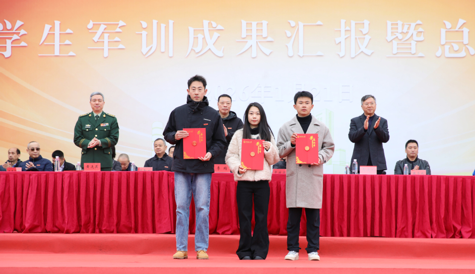 1月21日上午,学校2025级学生军训成果汇报暨总结表彰大会在旗山校区北区田径场举行。校领导李绚、韦建刚、詹松青、徐子青、戴福康、何仕,承训部队领导,学校相关职能部门、各学院负责人,以及2025级学生等参加大会。