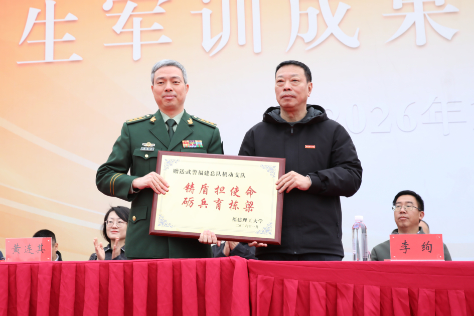 校党委书记李绚感谢承训部队多年来对学校军训工作的大力支持,对官兵们严管厚爱的训练理念和辛勤付出给予高度评价,并代表学校向承训部队赠送了牌匾。